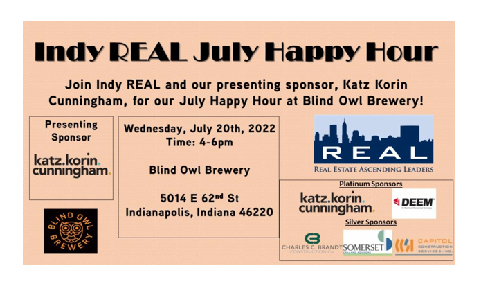 Join Indy REAL and our presenting sponsor, Katz Korin Cunningham, for our July Happy Hour at Blind Owl Brewery!