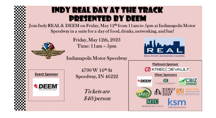 Join Indy REAL & DEEM at the Indianapolis Motor Speedway in a suite for a day of food, drinks, networking and fun!